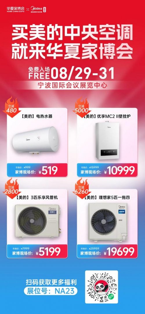 8月29日-8月31日,快来宁波国际会议展览中心参加美的家用中央空调总冠名的宁波华夏家博会吧!在这里,您将拥有一次难忘的家装采购之旅,一站式解决所有家装需求,轻松开启美好家居生活新篇。我们期待与您在展会现场相逢,共赴这场家装盛会。